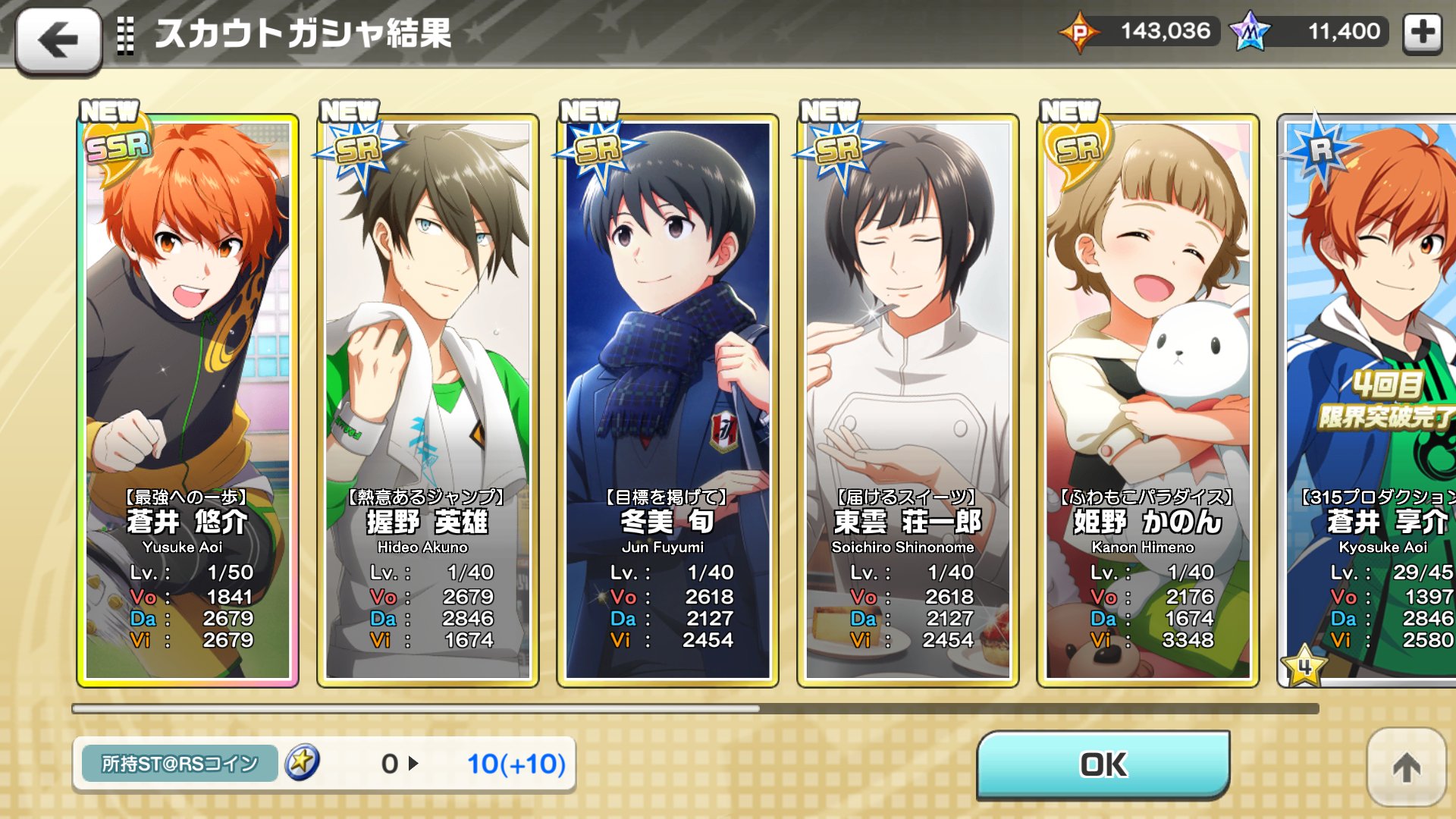 ポイント、765と876が入ってるのすごくね? 順位はなんか315を狙ったのにスロットで1つずつ目押しに失敗したみたいな感じですけど…
